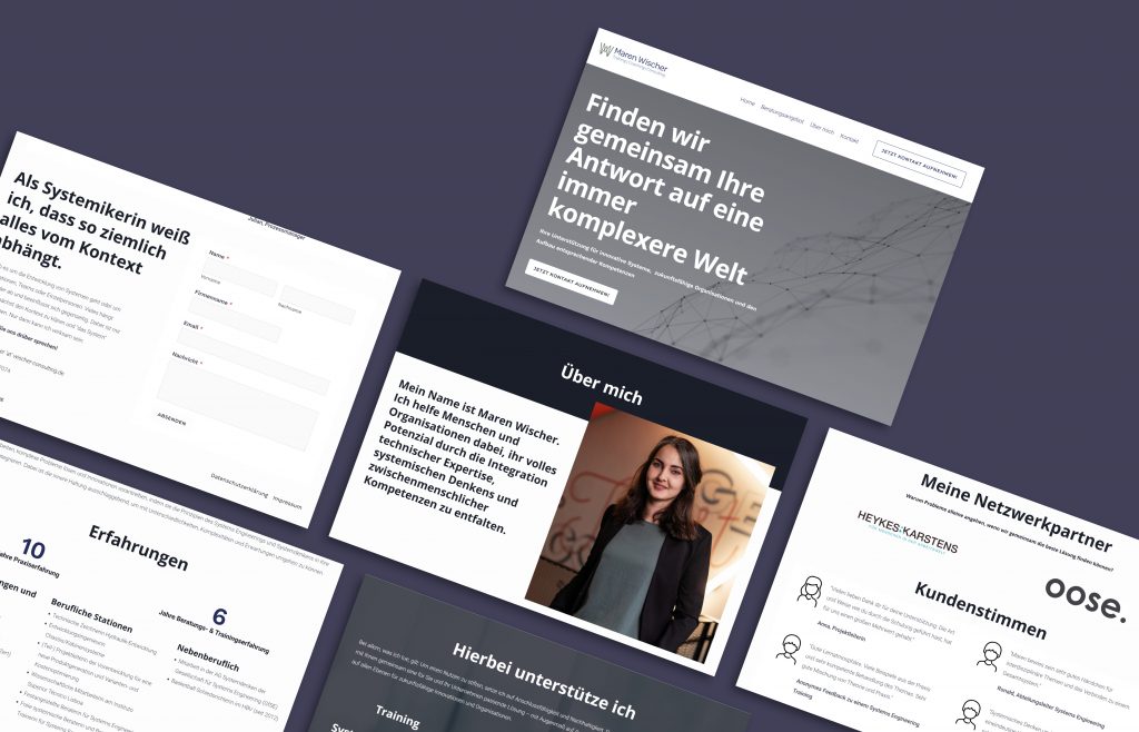 Für den Start von Wischer Consulting benötigte Maren Wischer ein einzigartiges Markendesign, das zu ihr und der Vision des Unternehmens passt, sowie eine Website, die sie und ihr Angebot an die Kunden präsentiert.